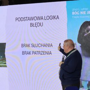 Uznają oni, że należy odrzucić jedną z nich. Nowy ateizm nie poprzestaje w tym, że nie ma Boga, ale że religia jest zła i trzeba ją zwalczać (np. Dawkins). Niektórzy z głosicieli nowego ateizmu uważają nawet, że osoby wierzące są chore i należy je leczyć. Zdaniem prelegenta nieporozumieniem jest odrzucanie religii lub nauki. Błędem jest pytanie czy świat i człowiek zostały stworzone przez Boga czy są wynikiem ewolucji. Teizm ewolucyjny głosi, że Bóg jest autorem Wielkiego wybuchu czy ewolucji.